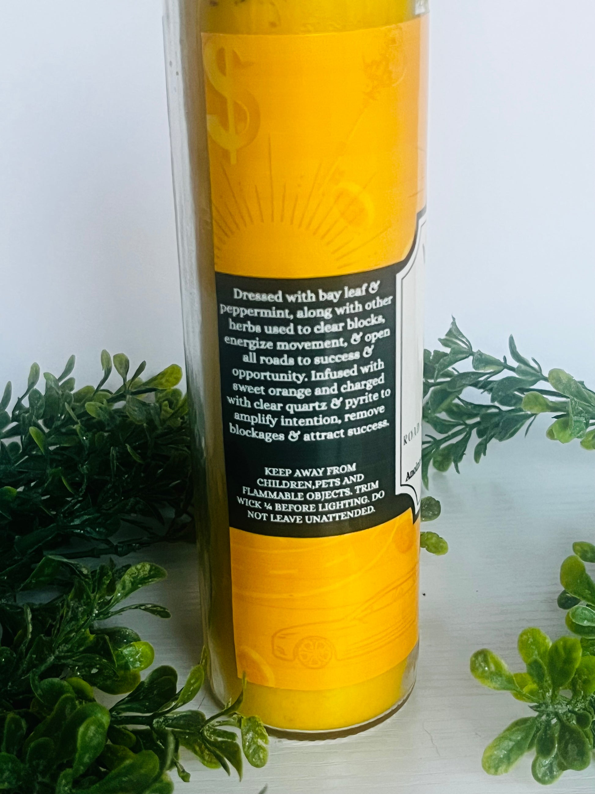 Infused with sweet orange oil, known for its uplifting and success-drawing properties that energize intention and attract abundance